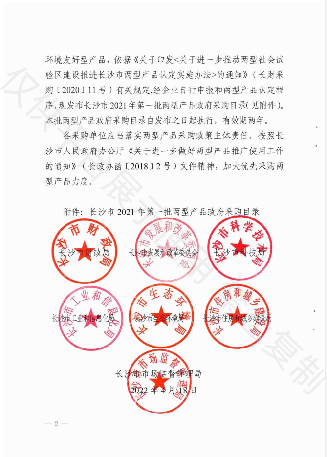 产品入选长沙市两型产品政府采(cǎi)购目(mù)录