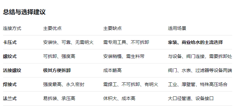 對於現代家庭不鏽鋼水管係統,“卡壓式為主,活接螺紋為輔” 是最佳組合。